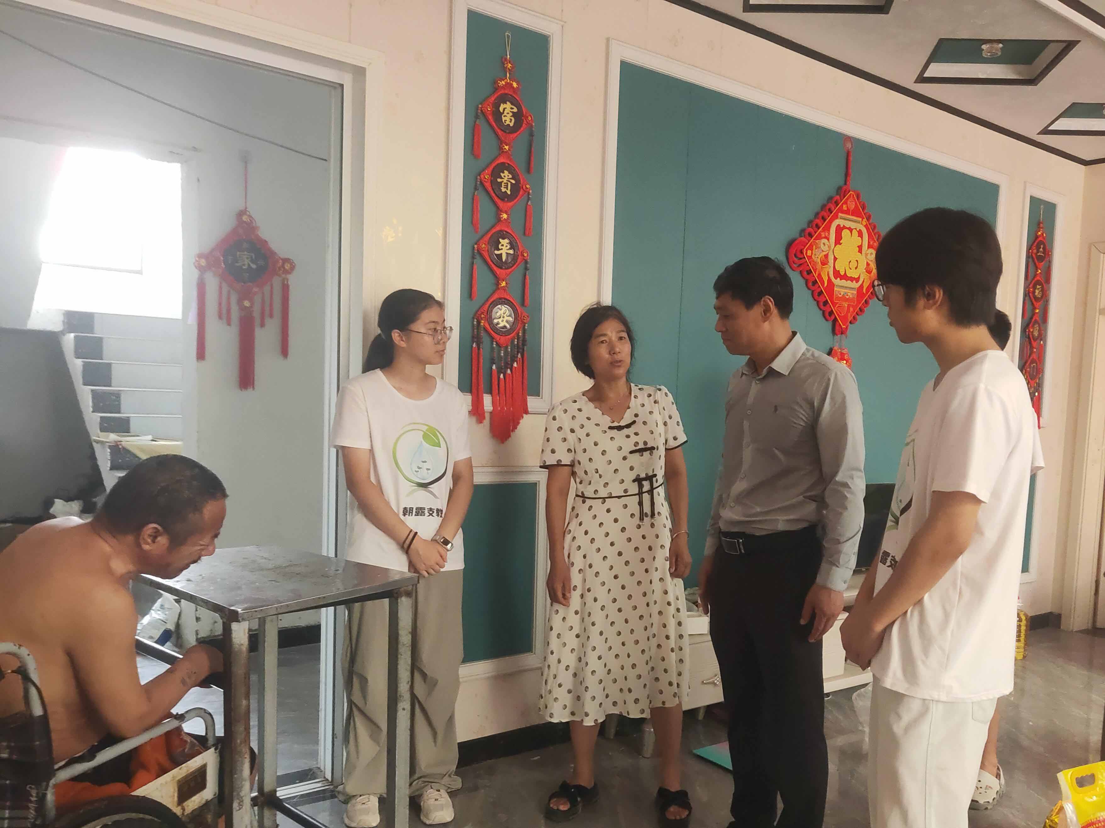 在臨別之際,團隊集聚眾人之力,募集資金,為趙村鄉(xiāng)當地貧困學生送去關心慰問。在翟樓村翟甜宇的家中,了解到10歲的翟甜宇的父親因為在工地干活出了事故常年癱瘓在床,母親兩年前出去打工后就再也沒回來,只有一個姑姑在照顧著這對父子的生活,日子過得相當拮據。在得知這一情況后,在場的人不禁潸然淚下。