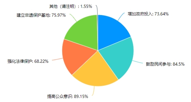 絕大多數受訪者認為應該增加政府投入、鼓勵民間參與、提高公眾意識等方式來更好地保護和傳承非物質文化遺產。