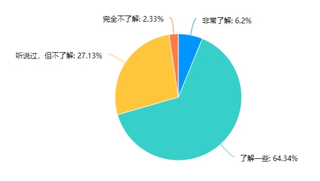 分析結論:根據數據表格顯示,對非物質文化遺產的了解程度主要集中在“了解一些”和“聽說過,但不了解”兩個選項,分別占比64.34%和27.13%。相對而言,對非物質文化遺產的“非常了解”和“完全不了解”的比例較低,分別為6.2%和2.33%。整體來看,大多數人對非物質文化遺產有一定程度的了解,但深度了解的人較少。