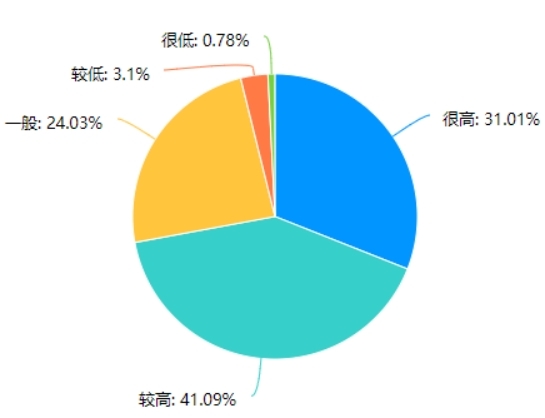 分析結論:根據數據表格顯示,參與非遺相關活動的人數分布如下:經常參與占比7.75%,偶爾參與占比44.19%,很少參與占比31.01%,從未參與占比17.05%。可以看出,大部分人偶爾參與或很少參與與非遺相關的活動,而經常參與的人數較少。