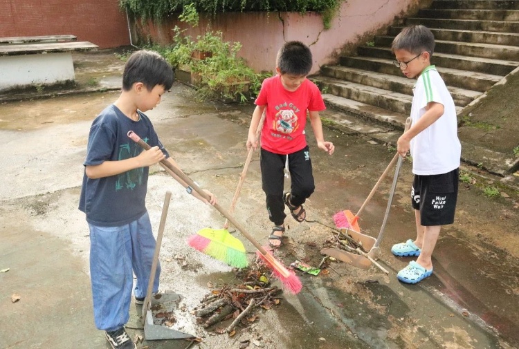 勞育——除了日常課程以外,實踐團成員也專門安排了大掃除,鼓勵孩子們積極參與勞動,清掃校園的各個角落。太陽雖大,他們仍然熱情似火!