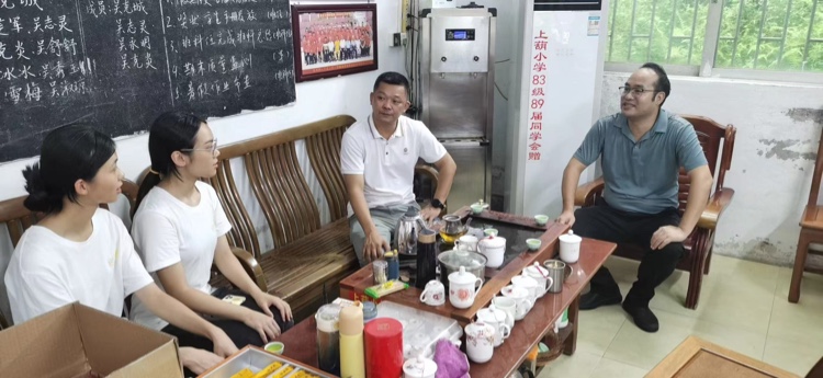 圖2 實踐團隊長在與八萬鎮副鎮長和上葫小學校長交談