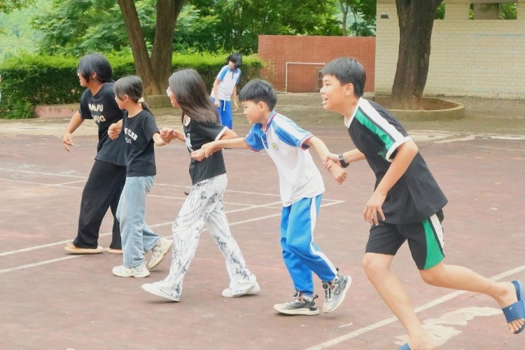 體育——在體育課上,實踐團成員們設計了“貓抓老鼠”“諾亞方舟”等多個趣味游戲,帶領孩子們鍛煉身體。孩子們在游戲中肆意奔跑,盡情揮灑汗水!收獲滿滿的友誼與歡樂!