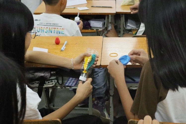 智育——在模擬肺呼吸的課堂上,實踐團成員帶領孩子們動手制作出模擬肺,通過模擬實驗和互動教學,讓孩子們親身體驗到肺呼吸的奧秘。