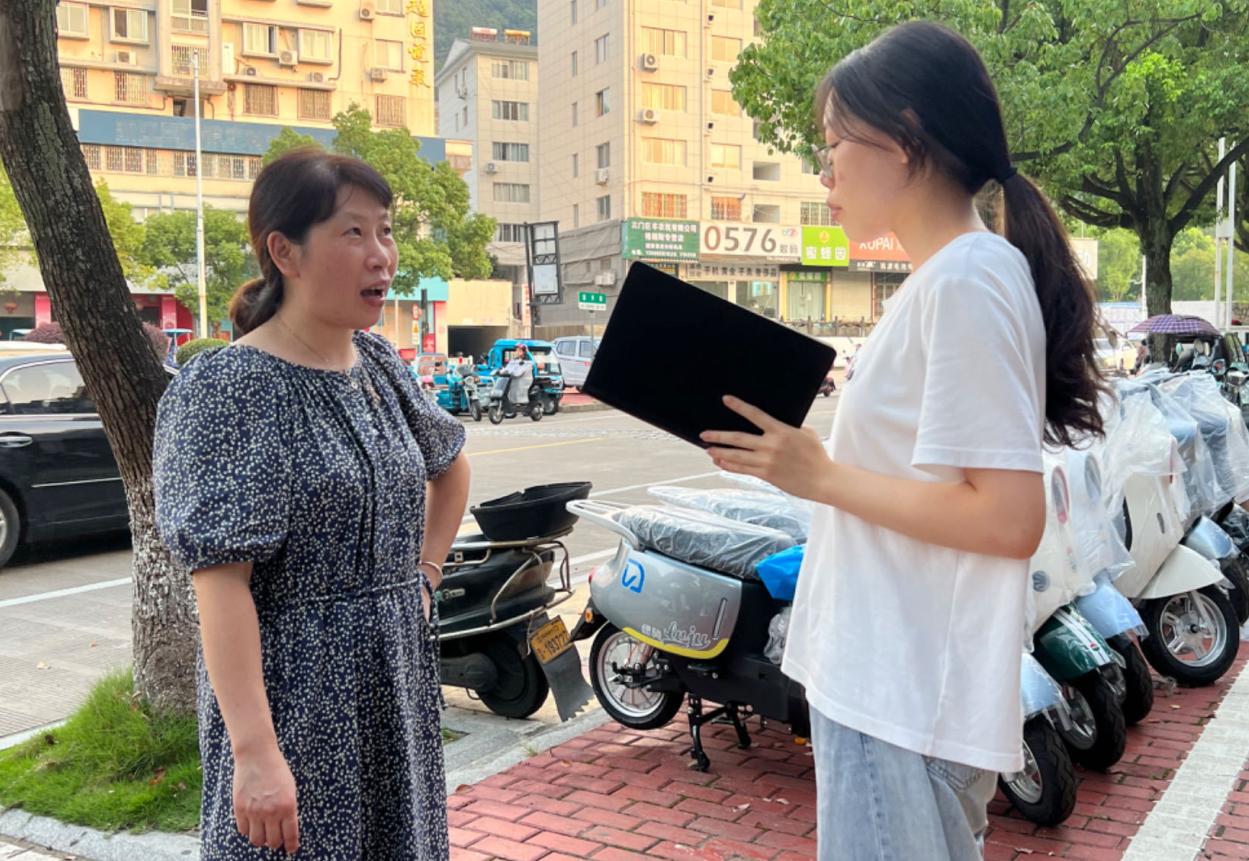 圖為團隊成員在街頭采訪當?shù)鼐用瘛?多彩大學生網(wǎng)通訊員 鄭若伶 供圖