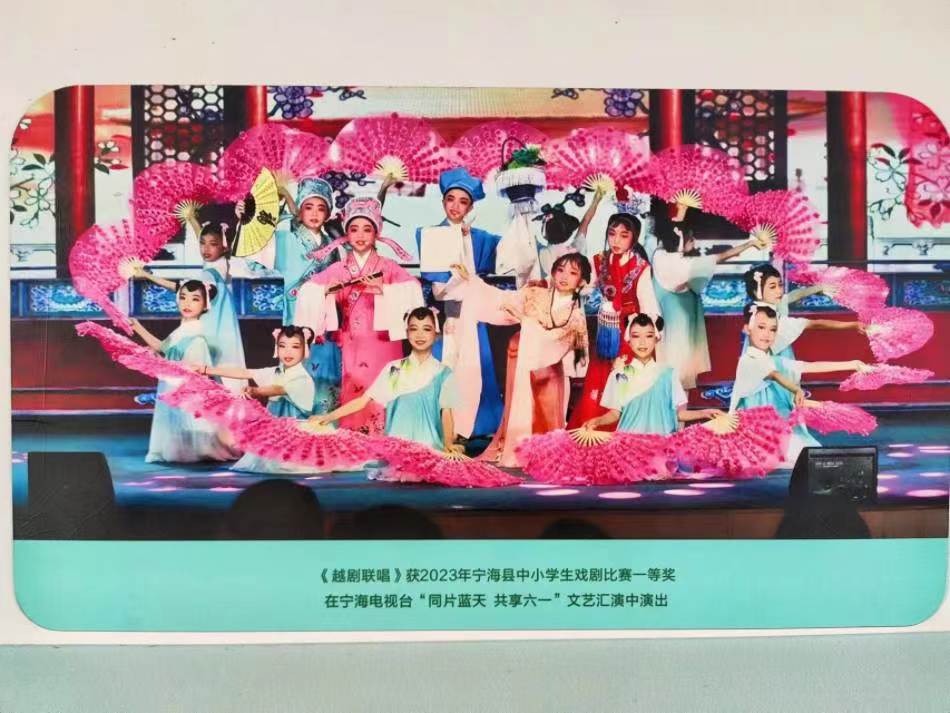 去年,潘天壽小學還積極參與了寧海縣第十四屆教育系統藝術節戲曲比賽,其《越劇聯唱》節目更是在音樂組與韓老師的指導下榮獲小學組一等獎,并受邀參加了寧海電視臺“同片藍天,共享六一”文藝匯演的錄制。但可惜的是,這批師生團體后續并沒有更多的培養計劃,韓老師也希望能在未來成立真正的戲曲團體。