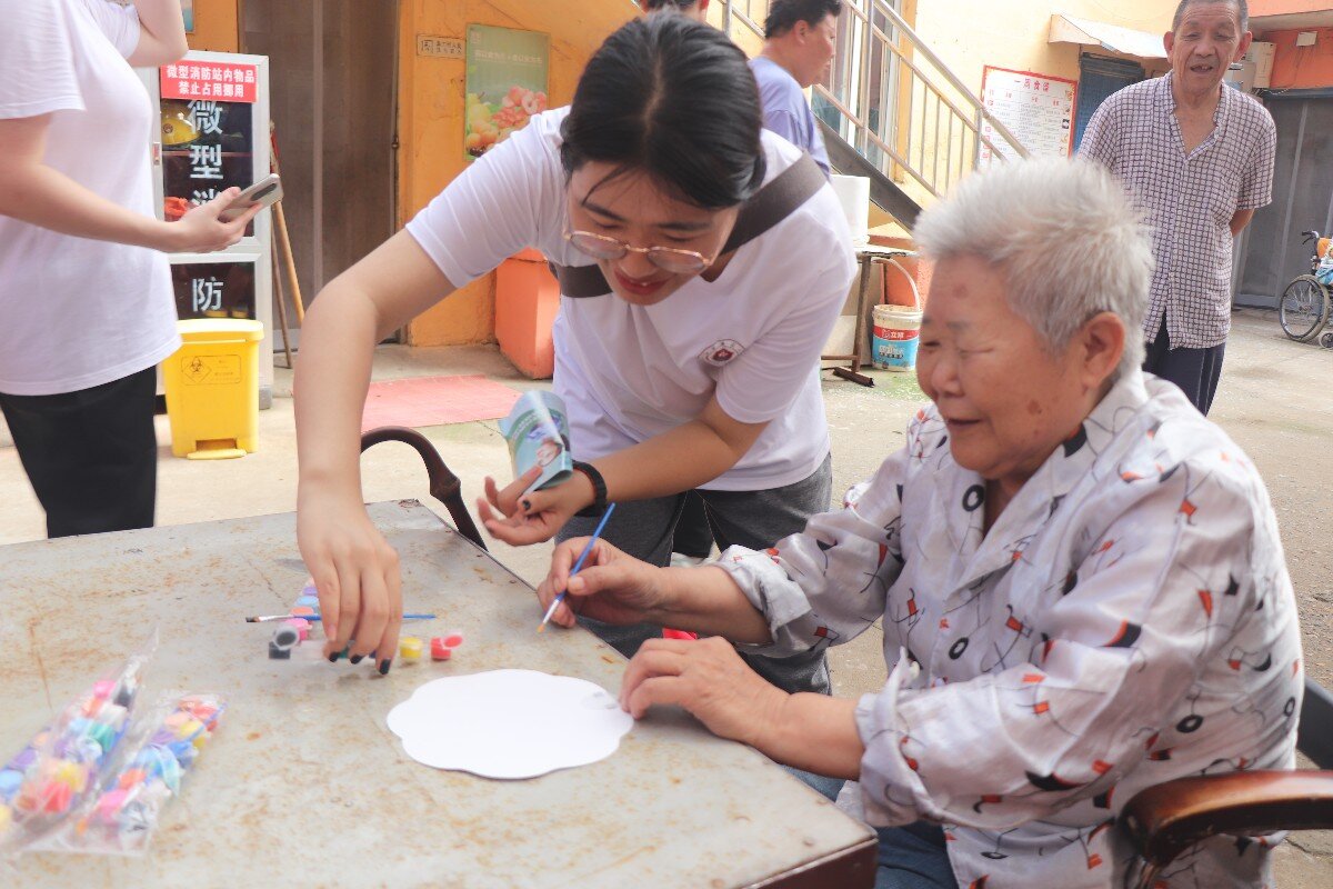 除了主題宣講以外,志愿者們還開展了“畫扇傳書”活動,起初老人們可能還有些羞澀,覺得自己畫畫的技術不太好。但是在志愿者們鼓勵下,有的老人寫下了自己的名字,獨樹一幟且飽含風骨。有的老人把今天宣講的肺結核的知識畫到了扇子上,還在畫完之后又一次對志愿者們豎起大拇指,表示自己有牢牢記住今天的知識。