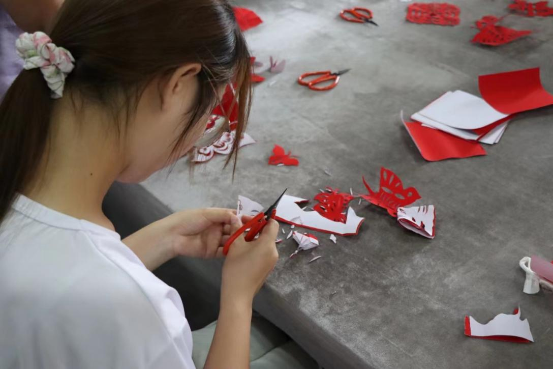 圖為實踐隊員學習剪紙技藝。 王高強攝