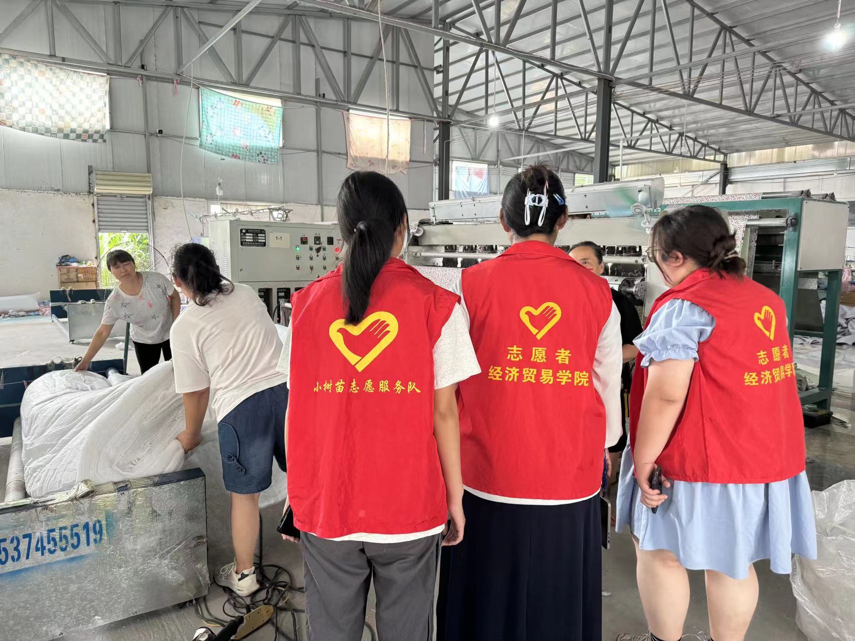 (圖為實踐隊員參觀張宋村紡織工廠)