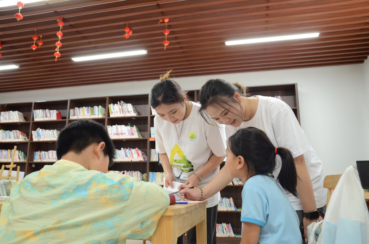 圖為志愿者正在幫助小朋友完成課程任務(wù) 方思遠(yuǎn) 攝