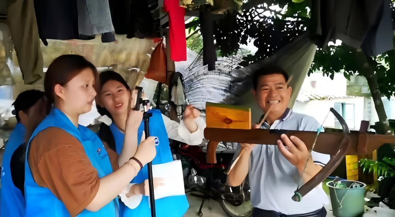 海南黎苗族的射弩文化歷史悠久。李政富是紅毛鎮什寒村里唯一的手工制弩人,他表示整個制弩過程都得依靠經驗和堅持。隨后,團隊成員進行了射弩體驗。通過學習射弩,深刻地理解了民族的歷史和生活方式。傳承人李政富老師強調,雖然時代在變遷,但傳統價值不變,年輕人外出闖蕩時仍需記得傳統文化。
