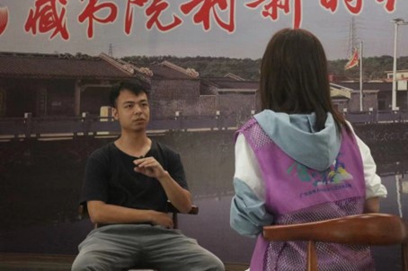 (調(diào)研組成員采訪洪拳傳人譚杰強 姜心悅攝)