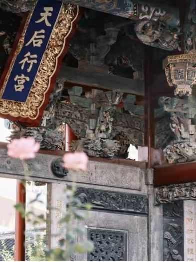 煙臺天后行宮始建于1884年(清光緒十年),建筑所用石木磚瓦等構件材料,均于福建泉州采制,精雕細刻成成品后海運至煙臺,再由閩南工匠到現(xiàn)場砌筑安裝、裝飾彩繪藝術于一身的閩南風格的古典寺院建筑,也是我國北方僅存的具有閩南風格的天后宮。