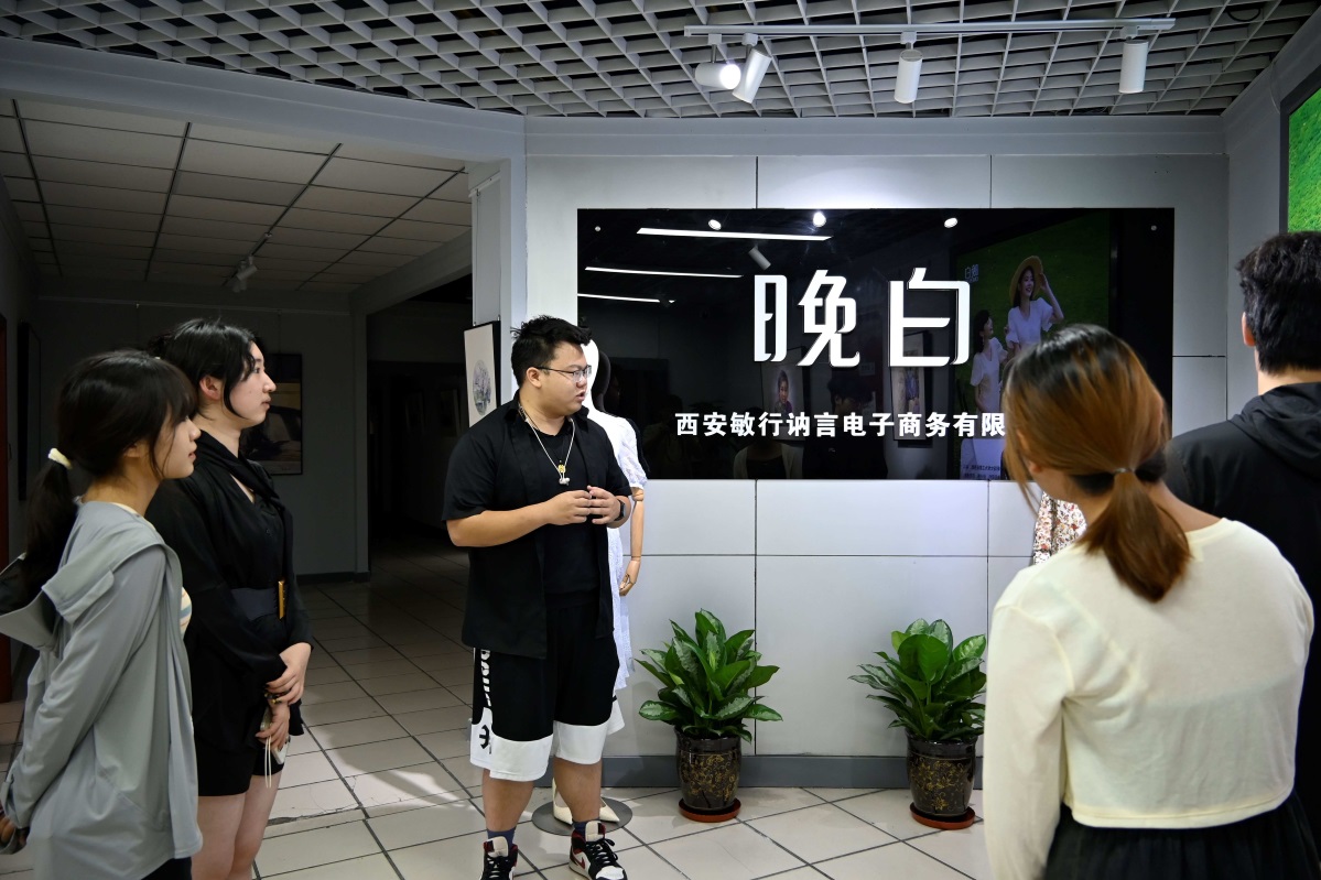 “我們公司不只是在線上平臺進行銷售和推廣,近來也在西安、深圳、廣州各地進行線下店面的布置,從而形成一個注重線上,同時也開拓現實陣地的一個發展格局。”在回答實踐團王澤塬同學對于公司的相關問題時,主要負責直播后臺管理的劉培培女士如此講述道“敏行訥言”電子商戶公司的近年新發展。