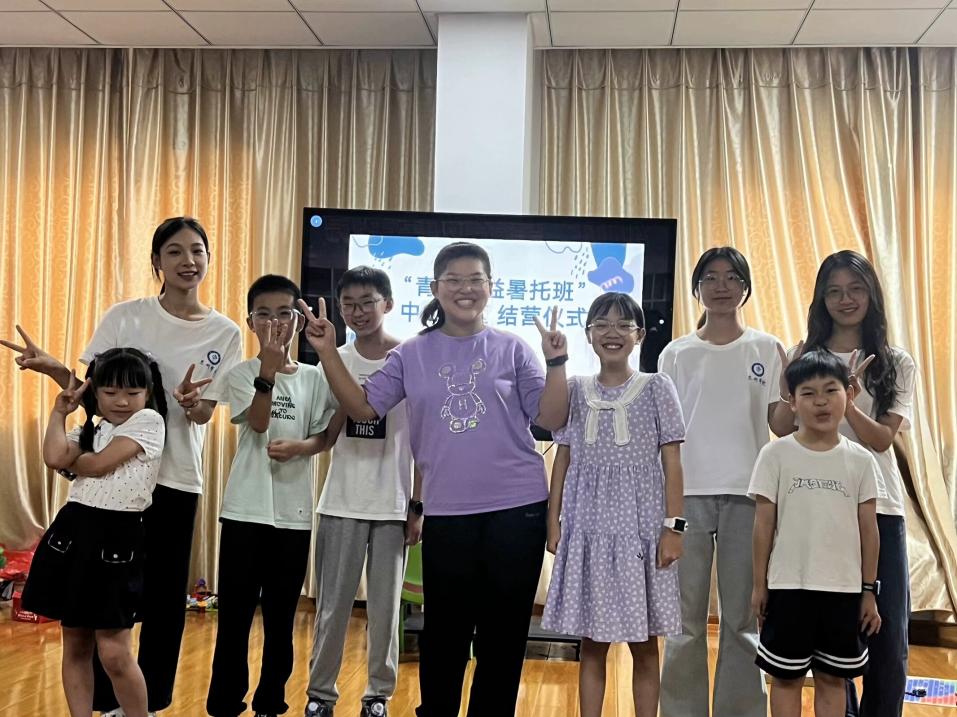 志愿者凌榆瑤同學對本次“青仔公益暑托班”做簡要匯報,她表示十分榮幸能和孩子們相遇在盛夏,并提出期待能盡快和孩子們迎來下一次相見。隨后,孩子們合唱《孤勇者》以表達他們的堅韌和不屈,師生合唱《小美滿》以表達他們對日后生活的美好期盼。