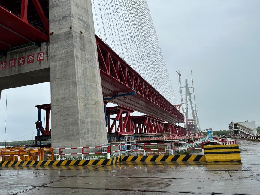 圖為 巢馬長江大橋的施工現場。