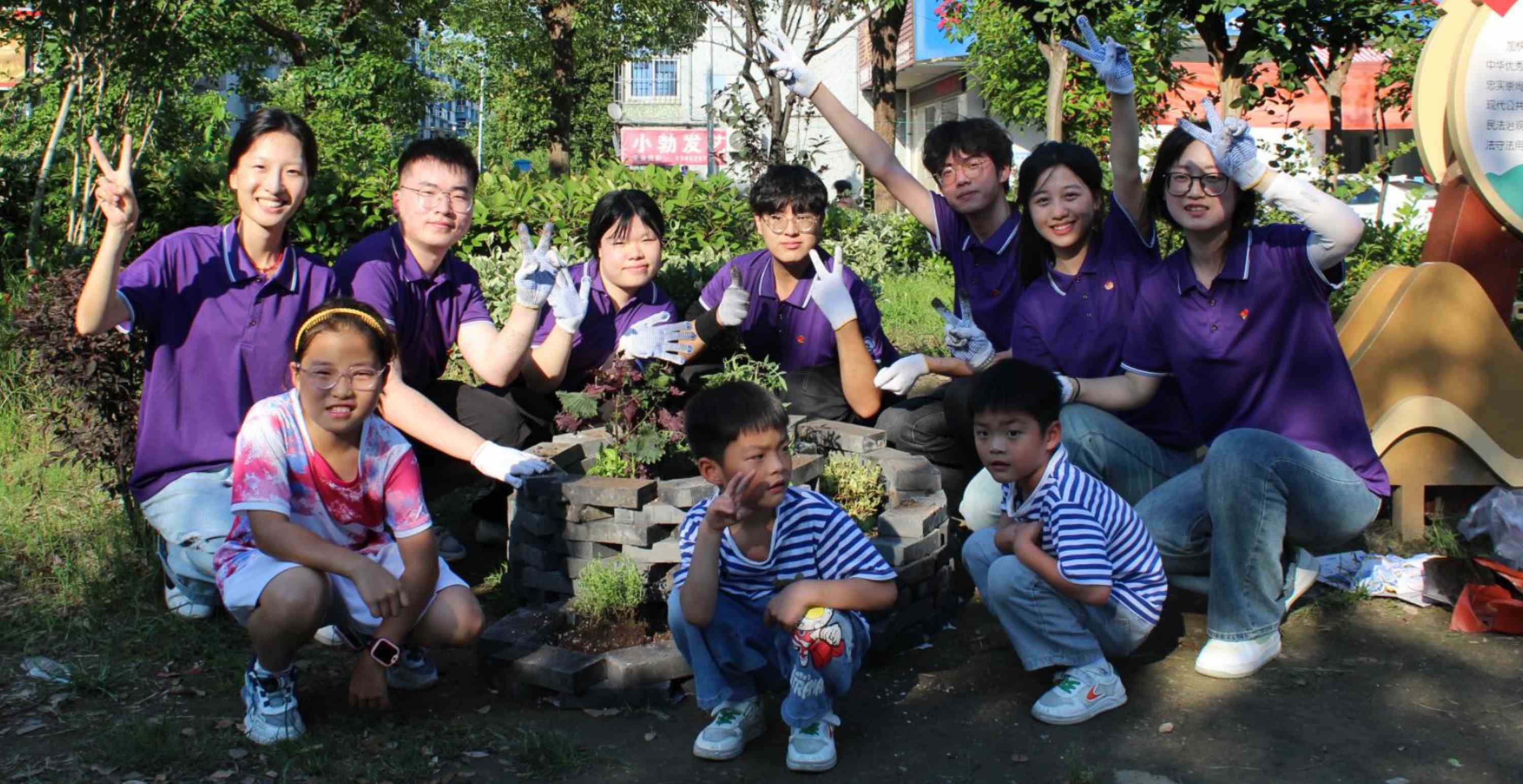 圖為社會實踐團完善螺旋花園后與小朋友合影。 武曉亮 供圖