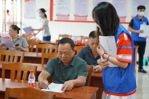 圖為社區居民在填寫關于社區醫療資源的調差問卷(邱紹君 供圖)