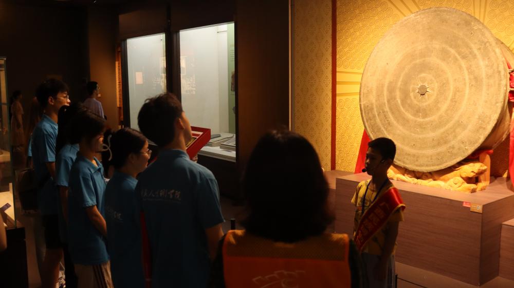 除此之外,實踐團成員來到“穿越時空的鼓聲—銅鼓文化陳列”展廳,不僅看到了各式各樣的銅鼓,還了解到了銅鼓的花紋樣式的內涵和制作工藝,讓實踐團成員真切的感受到了它們是實實在在的民族文化交融的見證物。