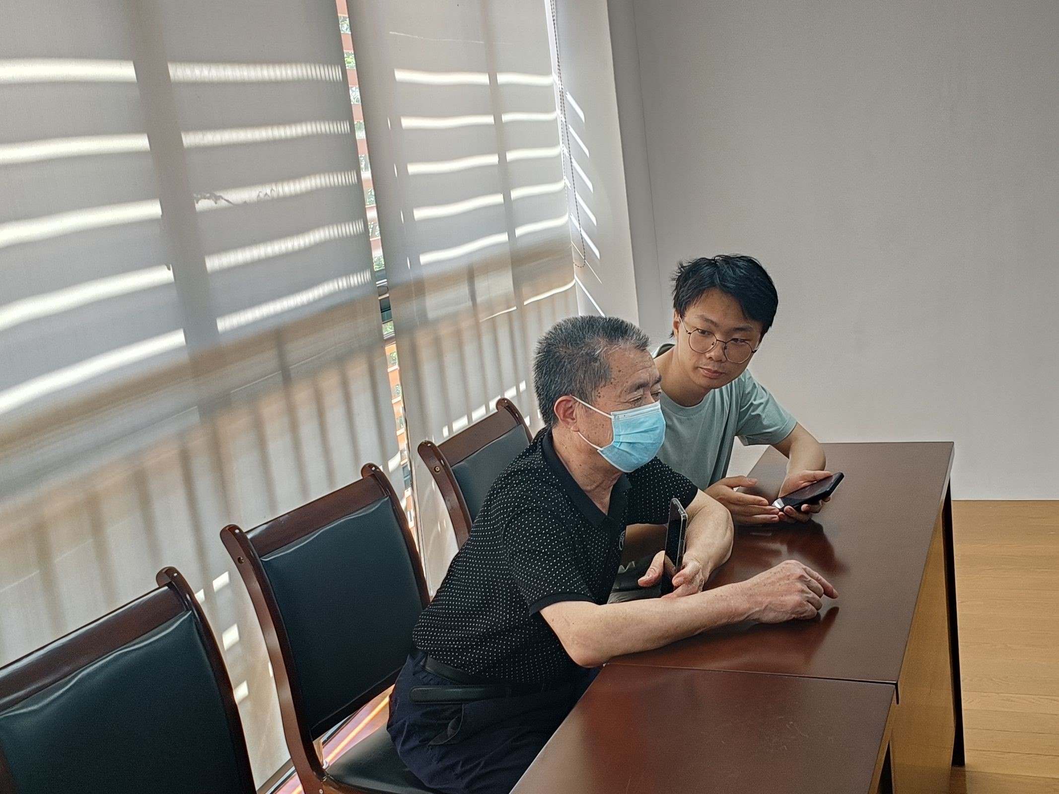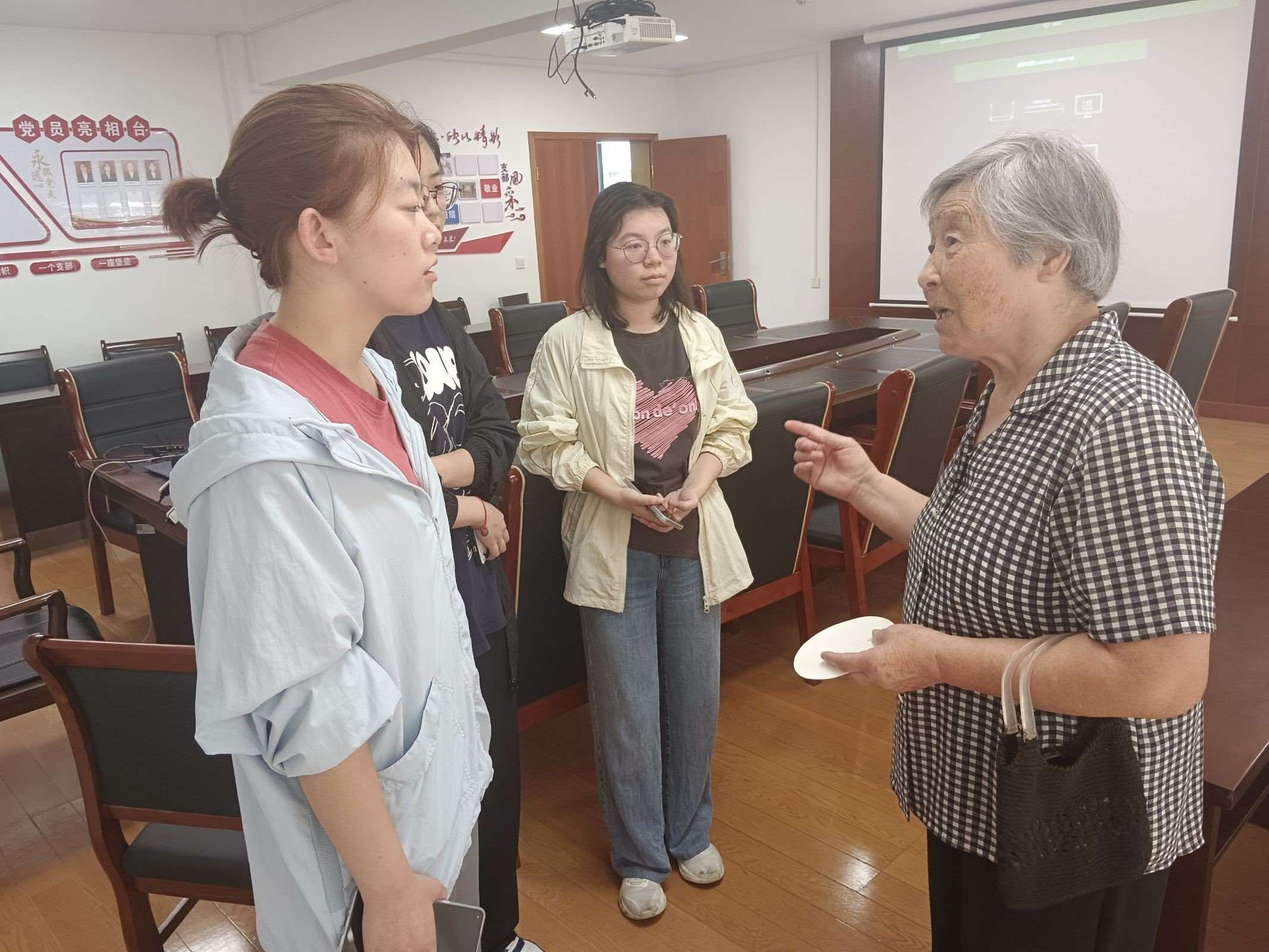 圖為老人與實踐團成員分享反詐騙宣傳感受。朱志昊 供圖