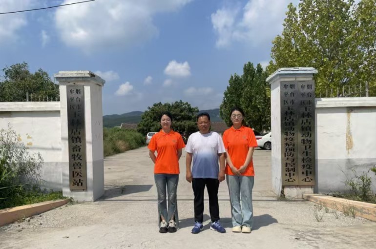 實踐服務團成員走訪調研煙臺市牟平區玉林店鎮動物疫控中心合影 賀千茹供圖