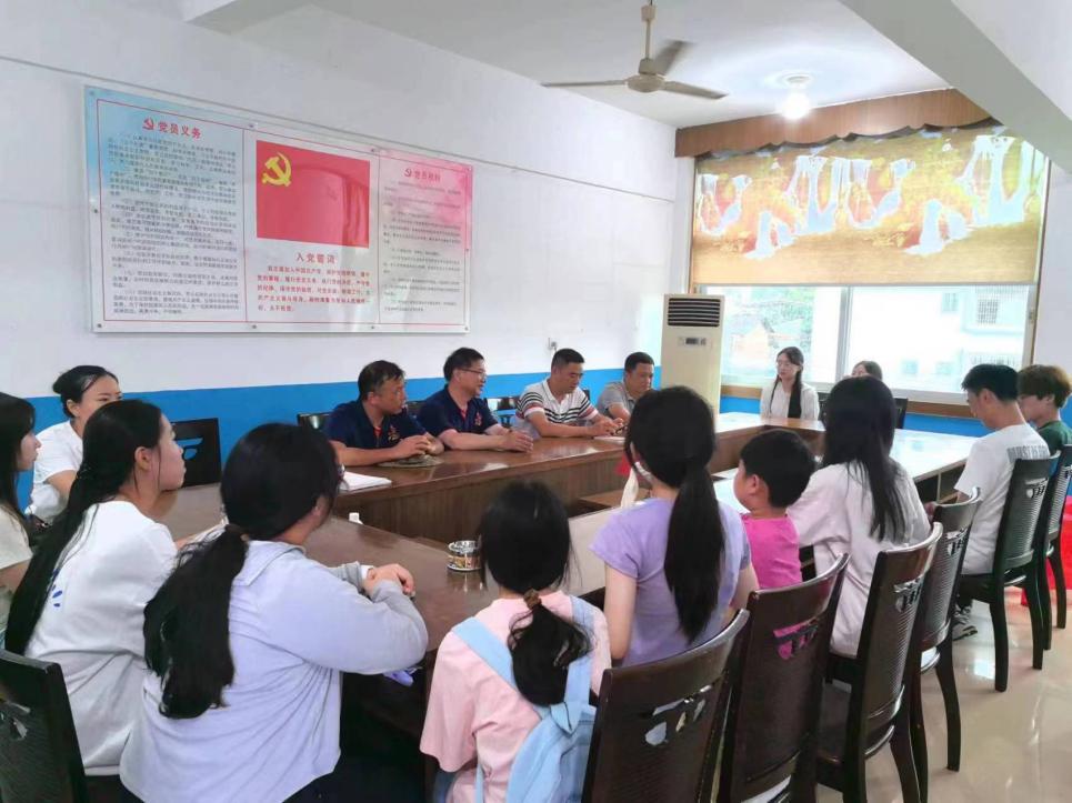 (實(shí)踐隊(duì)師生與當(dāng)?shù)馗刹块_(kāi)會(huì) 桂洪杰攝)