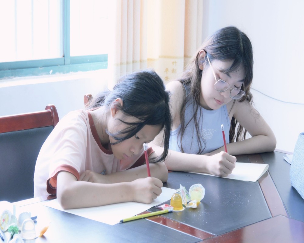 在義教時(shí)間里,本隊(duì)秉承“為孩子們送溫暖”的服務(wù)宗旨和理念,根據(jù)當(dāng)?shù)亓羰貎和瘜W(xué)習(xí)的薄弱環(huán)節(jié)和課程的缺失,有針對(duì)性的開(kāi)展與說(shuō)好普通話相結(jié)合的課程,包括:手工制作講解、國(guó)學(xué)經(jīng)典朗誦、歡樂(lè)游戲互動(dòng)、順口溜比賽、應(yīng)用繪畫描述等。