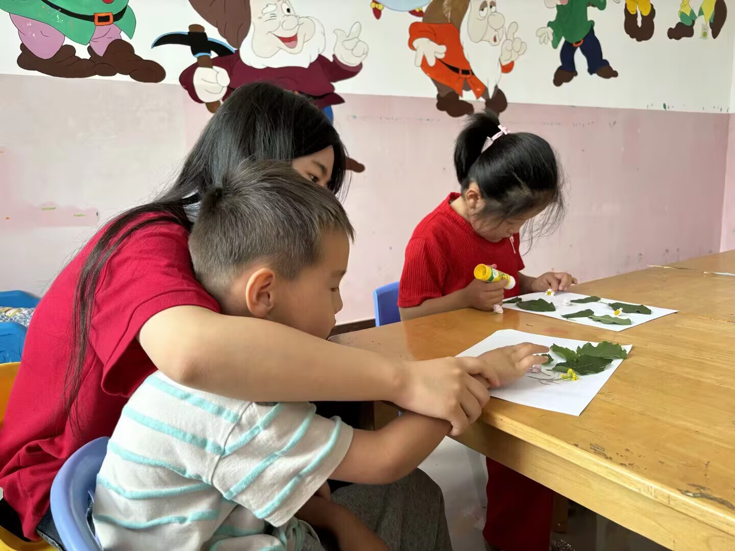 圖1:志愿者帶領孩子做植物貼畫——吳柳攝