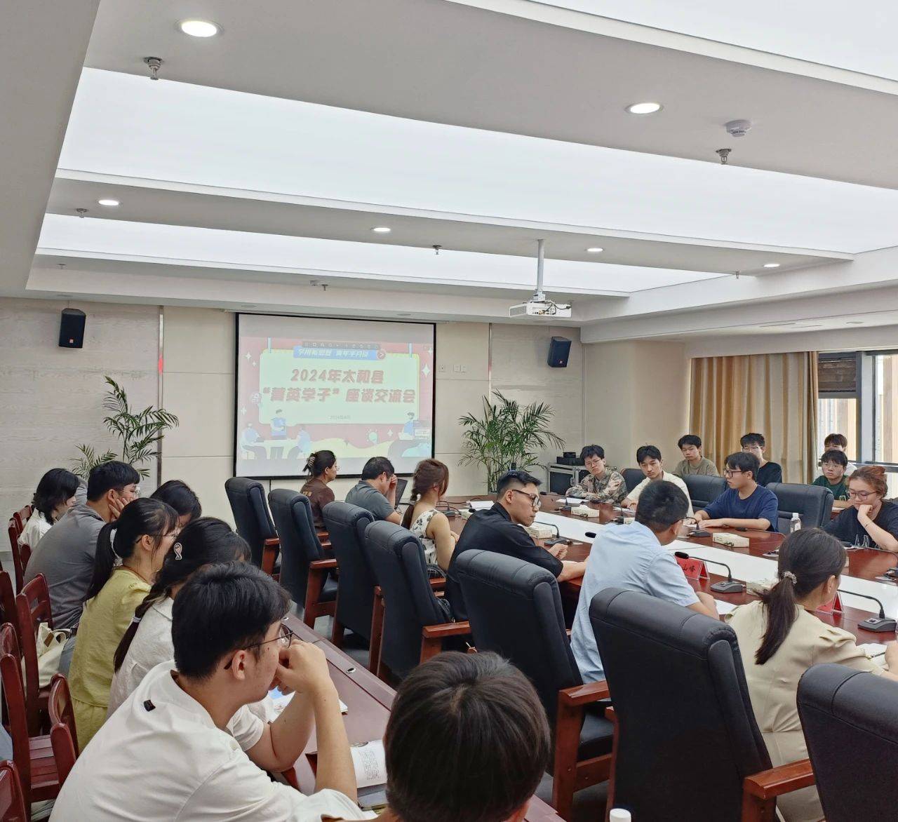 參觀結束后,召開了學用新思想,青年半月談——2024年太和縣“菁英學子”座談交流會,各縣直單位有關負責同志從行業主管領域介紹了就業創業方面的支持政策。企業代表和返鄉創業大學生代表從自身創業歷程分享了感悟、理解與收獲。優秀學子代表結合自己所學專業助力家鄉建設等主題進行交流,表達了對家鄉發展的熱切期待與堅定信心,紛紛表示將在自己的專業領域不斷提升,學有所成之際,為家鄉的發展貢獻更多智慧和力量。自由提問環節,與會部門與企業就學生們提出的有關人才創業、就業政策問題進行了全面、專業的解答。