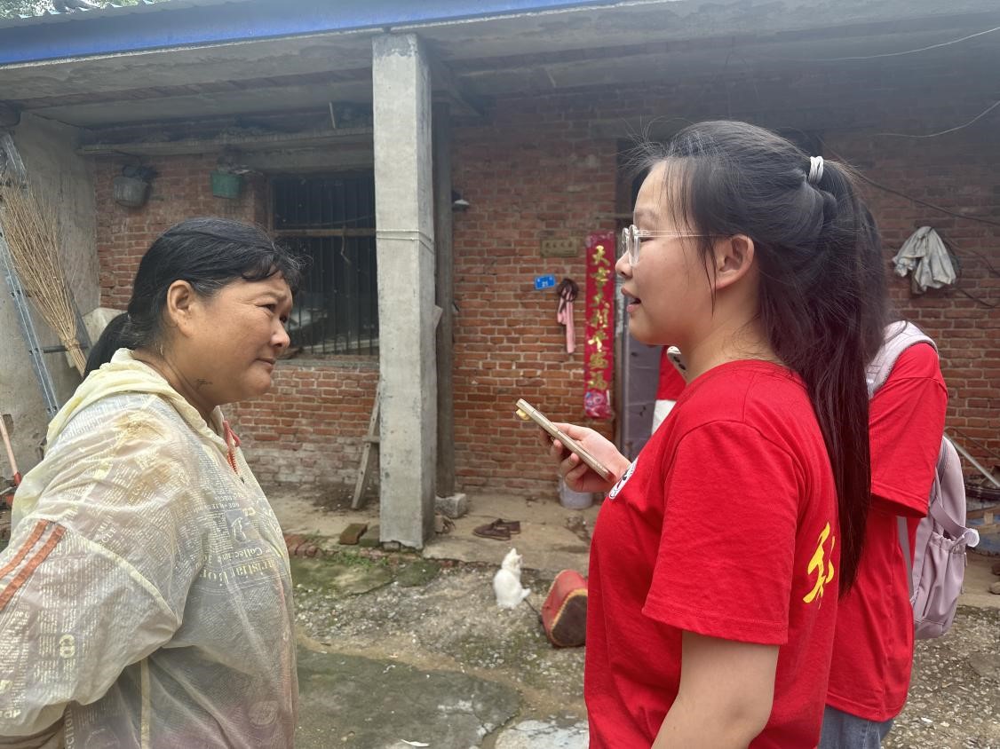 團隊成員楊蕊嘉在種植戶家中采訪鮮食玉米種植戶呂賢娜,深入學習鮮食玉米產業發展 通訊員 潘曉晨攝