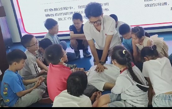 除了向孩子們傳授急救理論知識,團隊成員們還積極指導他們進行AED的實際操作訓練。在團隊成員的示范及細致輔導下,孩子們得以親身體驗急救措施。這種融合了理論與實踐的教學方式,不僅極大地提升了孩子們對急救措施的實際操作能力,還加深了他們對于急救設備使用的理解和掌握。此外,團隊成員們并未止步于此,他們還進一步向孩子們傳授了其他基礎但至關重要的急救技能,例如心肺復蘇術(CPR)。在傳授這些技能的同時,團隊成員們也著重強調了它們在緊急情況下的重要性,使孩子們深刻理解到掌握急救技能對于挽救生命、應對突發狀況的關鍵作用。通過這樣的綜合培訓,孩子們不僅獲得了寶貴的知識和技能,更在潛移默化中培養了他們的安全意識和自救互救能力。此次活動不僅為羅溪鎮的學生們提供了一個難得的學習機會,也展現了常州工學院學生的專業素養和強烈的社會責任感。通過這樣的實踐活動,孩子們不僅提升了自身的安全意識和急救能力,更為未來可能從事醫學或相關領域的研究與實踐奠定了堅實的基礎。