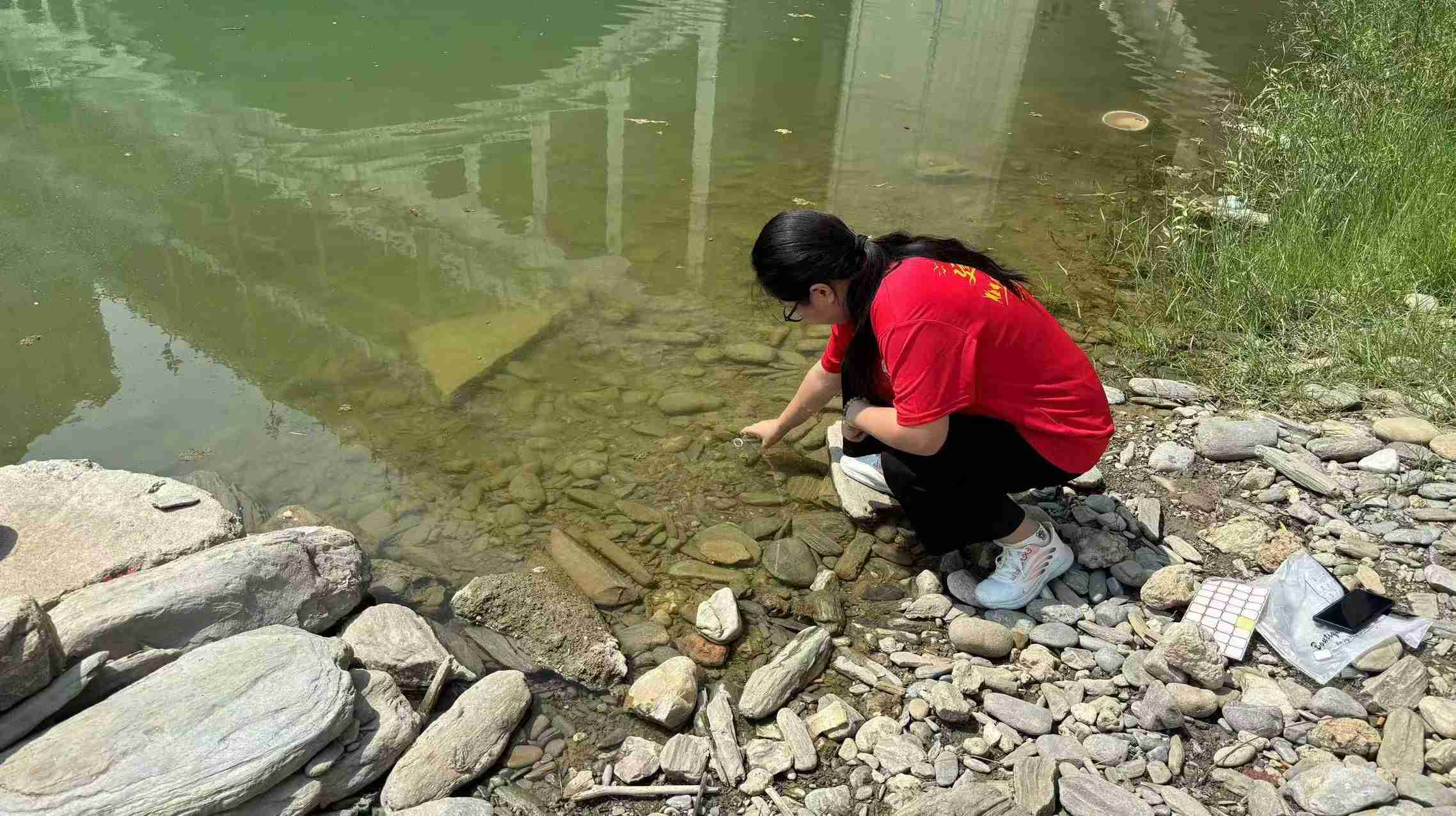 圖為實(shí)踐隊(duì)員在第二取水樣點(diǎn)采集水樣。孟俊鑫 供圖