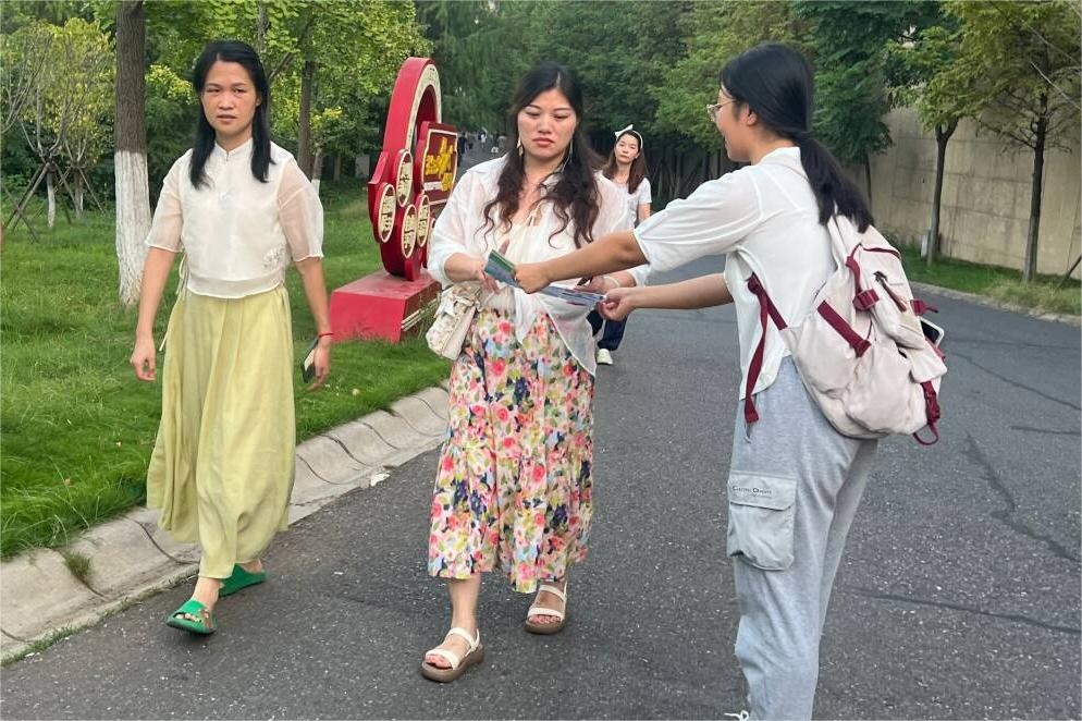 實踐團隊成員曾曉爍正在分發宣傳手冊 郭巖攝