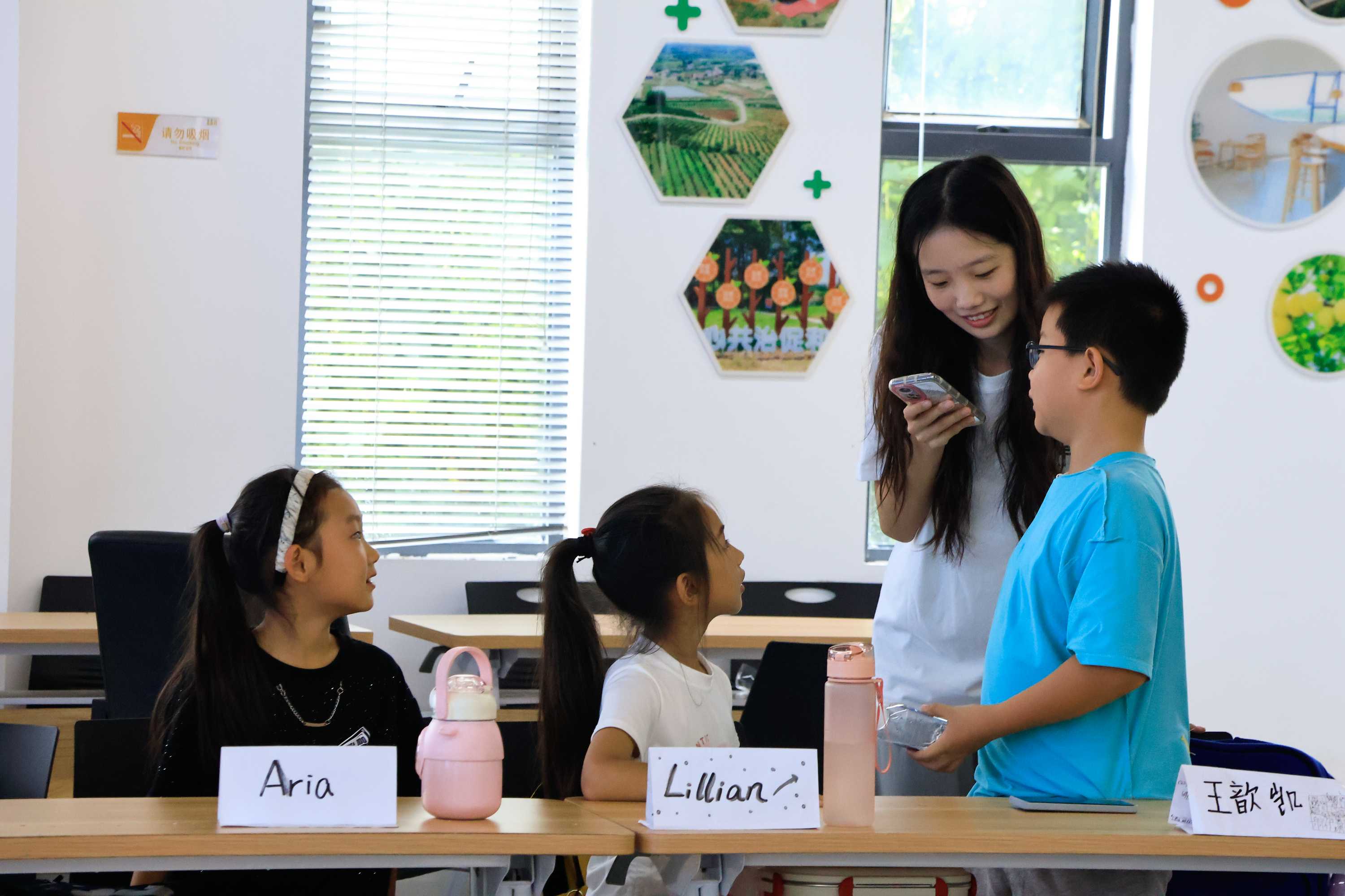 7月14日,團隊成員與小朋友們首次會面,隨后正式課程拉開帷幕。在數學課上,成員或以拋硬幣為例,或以開奶茶店為引,引導小朋友們從生活中發現數學問題,培養數學思維,陸夢陽則通過電影片段、歷史事件等,幫助其厚植家國情懷、堅定理想信念。而在語文課上,王心怡向小朋友們講述《背影》《從百草園到三味書屋》等文章背后的故事,帶領小朋友們走進朱自清與魯迅的人生,聶戀書則以《上春山》為例,賞析其歌詞中蘊含的古典詩詞與典故。