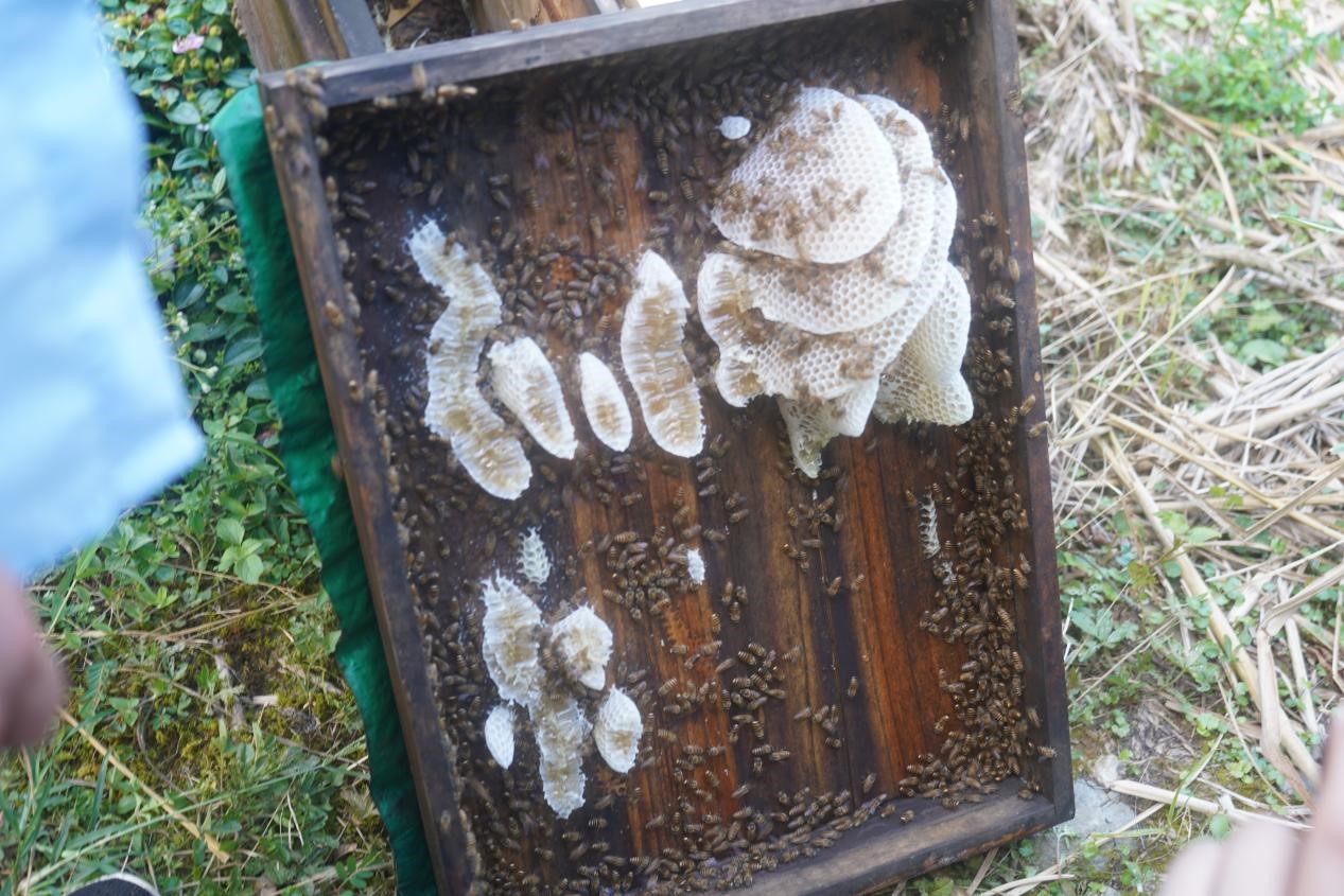 圖為向網友們展示蜂巢。 楊雨萱 供圖