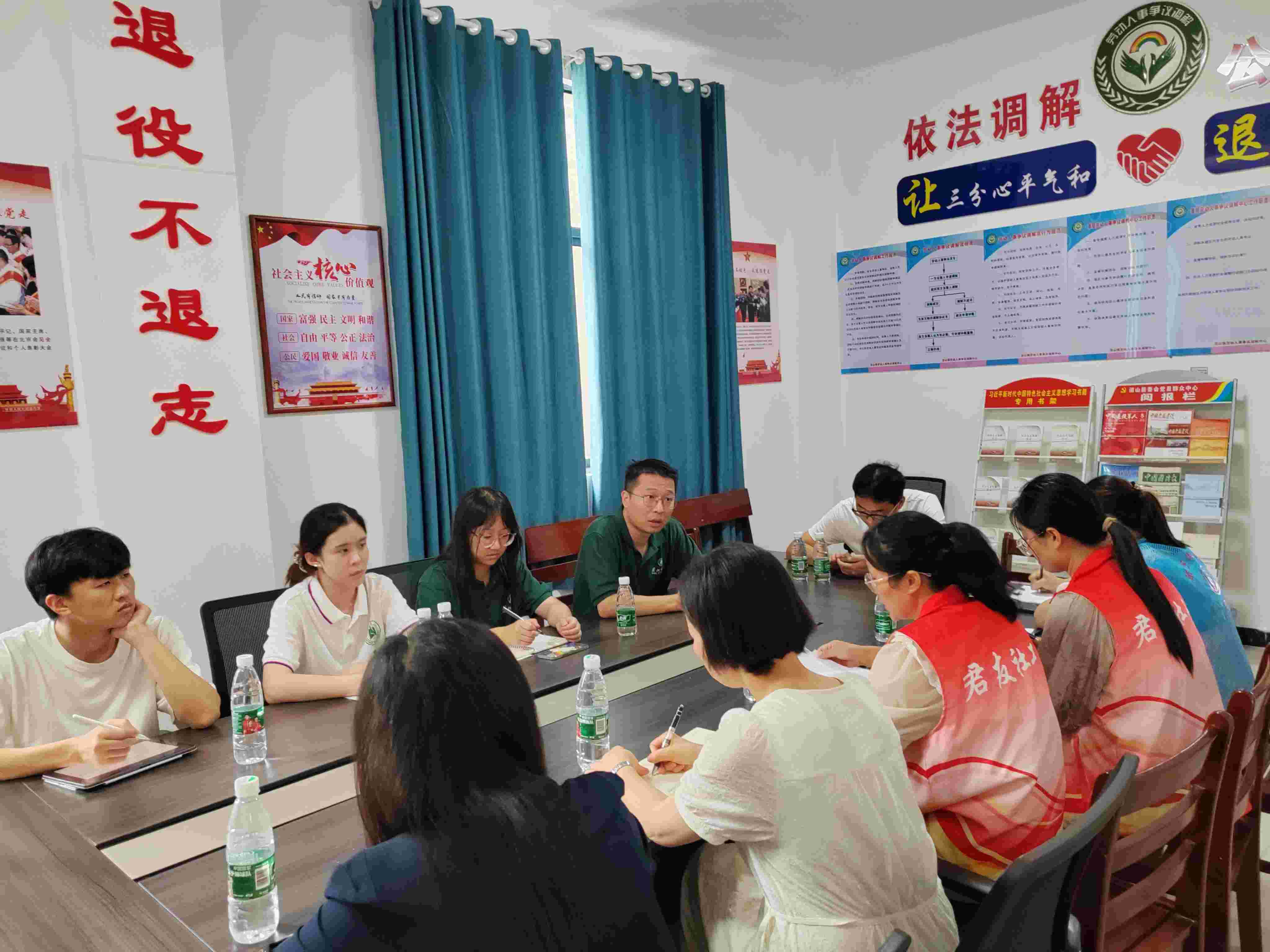 (圖為成員與沼山社工站及民政辦工作人員交流智慧養(yǎng)老相關(guān)措施。彭思琦 供圖)
