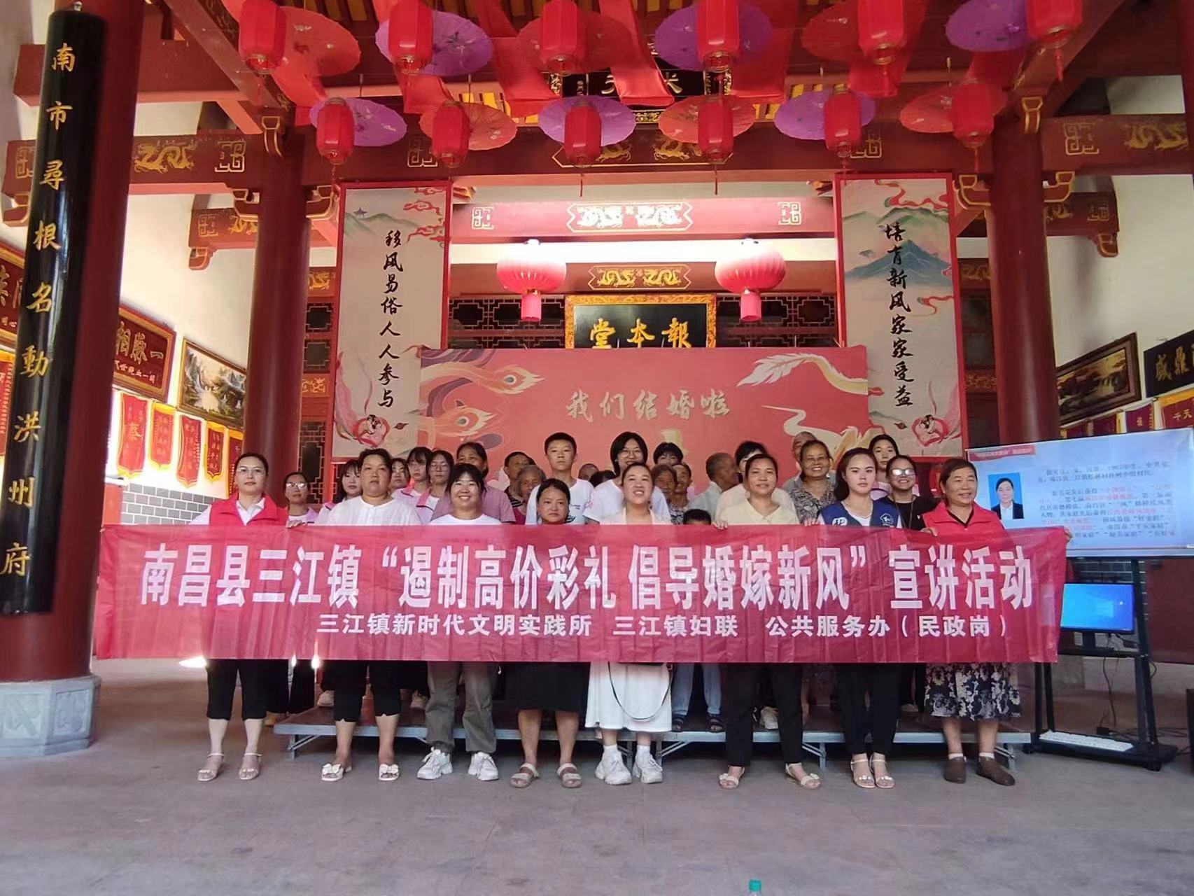 行移風(fēng)易俗,樹文化新風(fēng)。為積極培育和踐行社會主義核心價(jià)值觀,推動移風(fēng)易俗和鄉(xiāng)村文明建設(shè),樹立文明和諧新風(fēng)尚,微光“童”行支教隊(duì)在蔡鄉(xiāng)走過了一條古代先賢遺風(fēng)與現(xiàn)實(shí)傳統(tǒng)孝道相結(jié)合的新風(fēng)之路。支教隊(duì)來到了三江蔡鄉(xiāng),在古色古香的御化學(xué)堂里與狀元、進(jìn)士們相遇;在蔡氏祠堂中,“中國好人”徐美花進(jìn)行了一場以傳承孝悌禮義文化、倡導(dǎo)民族新風(fēng)為主題的宣講活動,從宣傳實(shí)踐的過程中領(lǐng)略到文化新風(fēng)給中國傳統(tǒng)鄉(xiāng)村輸出的文化力量。微光“童”行支教隊(duì)與當(dāng)?shù)刂驹刚咭煌麄骱屯茝V移風(fēng)易俗,采取現(xiàn)場講演、宣傳冊發(fā)放等形式倡導(dǎo)鄉(xiāng)村新風(fēng)尚,在蔡鄉(xiāng)的宣傳欄上留下了團(tuán)隊(duì)為之付出的努力與汗水。婚事新辦,“六提倡、六反對”;喪事簡辦,“八不、八提倡”;規(guī)范禮金聘禮,文明新風(fēng)的創(chuàng)新與發(fā)展讓鄉(xiāng)村文化風(fēng)俗更加自然規(guī)范,從而減輕人民的負(fù)擔(dān)。“唯有理解和幫助,才能和諧與長久”。支教隊(duì)隊(duì)員們在與蔡鄉(xiāng)高齡老人的親切交談中認(rèn)識到了中國歷史沉淀和優(yōu)秀文化底蘊(yùn)給鄉(xiāng)村振興帶來的巨大動力。星輝輔弼,共建新風(fēng);連廊之間投射下來的光照亮的不僅是斑駁的石墻磚瓦,更是“丈母娘團(tuán)”、易俗新風(fēng)在新農(nóng)村發(fā)展過程中的奉獻(xiàn)與成就。