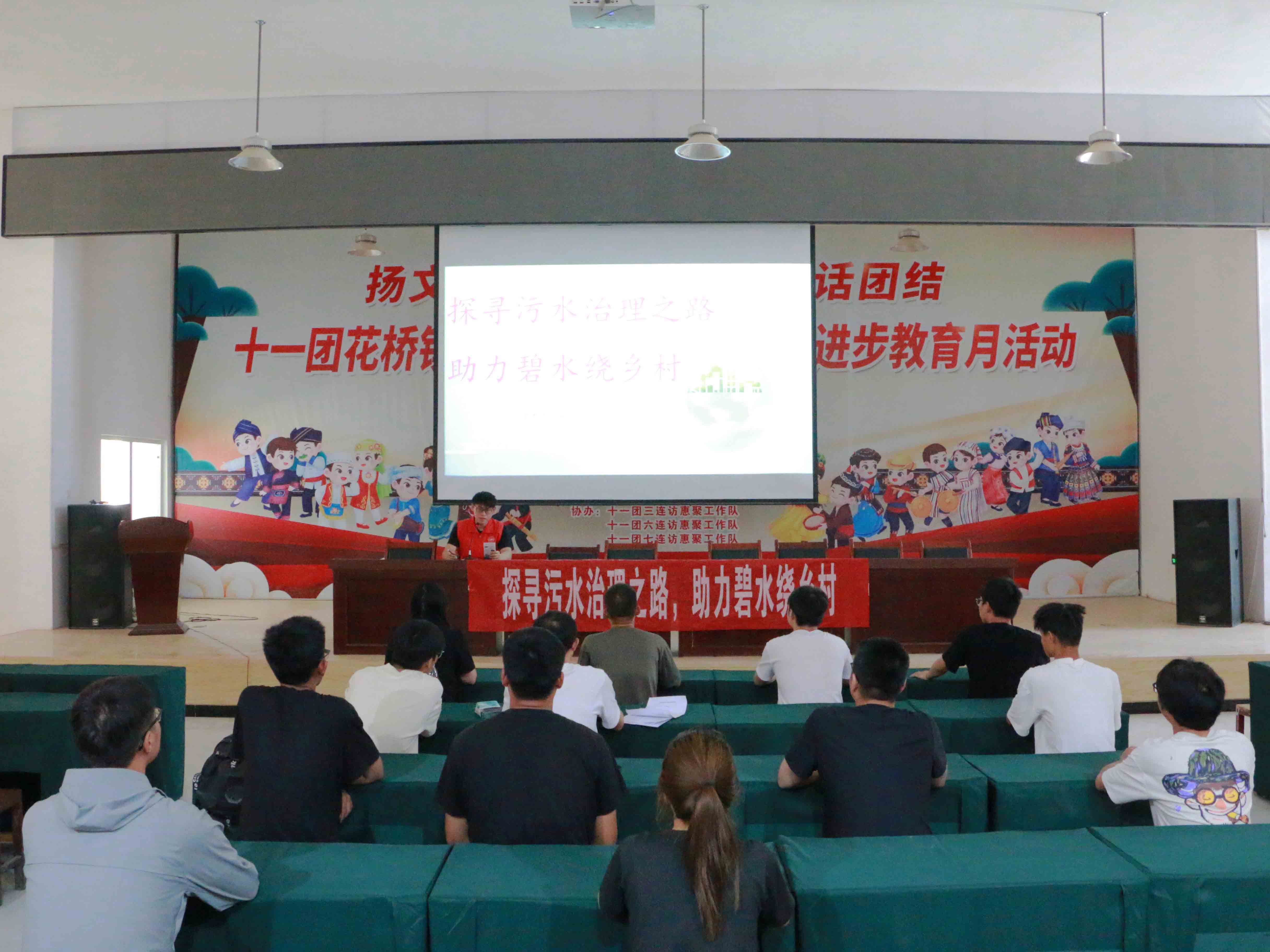 為深入貫徹落實“綠水青山就是金山銀山”的新時代新發展理念,體現綠色是永續發展的必要條件和人民對美好生活追求,解決人與自然和諧共生問題,水利與建筑工程學院“探尋污水治理之路,助力碧水環繞鄉村”三下鄉社會實踐隊,走進十一團一連開展農村生活污水治理宣講會并進行調研實踐活動。