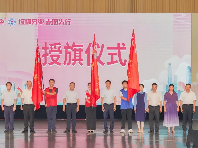 活動當天,茂名市委社會工作部、市發展改革局、市城管執法局、團市委、市婦聯等有關部門領導干部及300余名志愿者齊聚一堂。在授旗儀式上,與會領導嘉賓和志愿者共同觀看了生活垃圾分類志愿服務宣傳片,隨后領導嘉賓為各志愿服務隊伍鄭重授旗,標志著這些隊伍將肩負起宣傳、推廣、監督垃圾分類的重任。