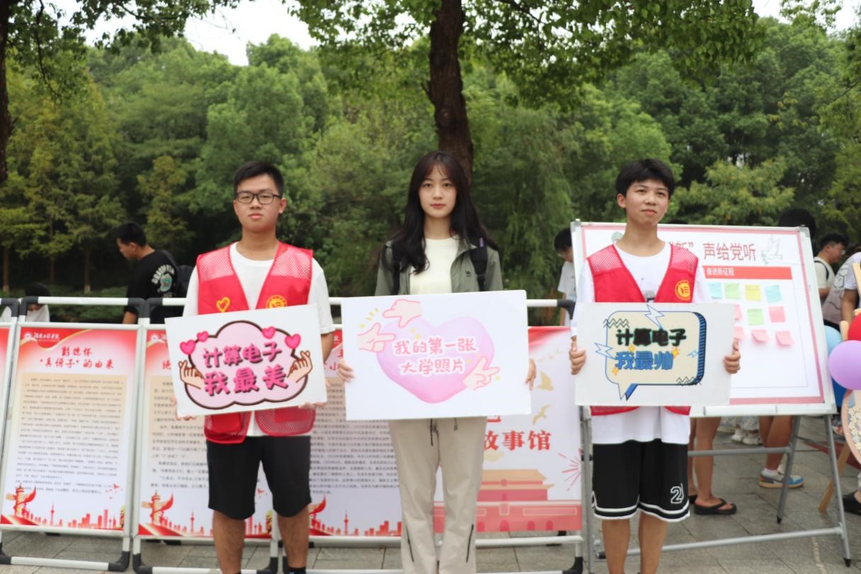 關懷第一課:滿心歡喜初相遇 光影定格啟新程“計算電子學院在這里...”由學院師生組成的志愿者隊伍熱情地在校門口吆喝道,與每一名新生打招呼。他們在校園里不停穿梭、各處忙碌、搬運行李、引導報到流程...暖心的服務讓新生感受到家的溫暖。“來,看這里,笑一笑。”隨著相機快門的按下,一張張燦爛的笑臉在那一瞬間被定格,這是屬于新生的大學第一張照片,更是新生開啟大學生活的珍貴見證。24級新生頓易鑫看到剛拍出來的照片,激動地說:“沒想到大學里會收到這樣一份特別的禮物,這讓我對大學生活充滿了期待。”
