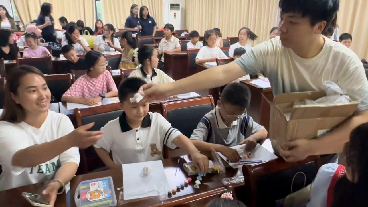 宣講階段結束后,志愿者們還安排了實踐環節。他們給小朋友們發放了白胚石膏娃娃和涂色顏料,并引導他們進行自主創作。孩子們在志愿者的指導下,開始了他們的藝術創作。在涂色環節,每個孩子都全神貫注,用畫筆細心地為娃娃上色,他們的眼神中充滿了專注和熱情。孩子們在創作過程中,還不時地與周圍的小伙伴分享自己的創作心得,互相學習和交流,場面十分熱鬧。隨著創作的進行,孩子們的手中的石膏娃娃逐漸變得生動起來。最終,在他們的巧手中,一個個色彩斑斕、五官生動、仿佛隨時會躍然跳動的“庫洛米”、“奧特曼”等角色誕生了。這些作品不僅展現了孩子們的個性和創造力,也成為了他們美好回憶的載體。