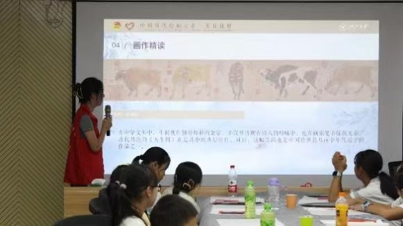 圖為“墨韻華章”宣講團成員為孩子們做畫作賞析 熊思雨供圖