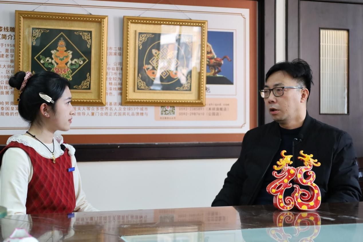 為深入學習貫徹習近平文化思想,大力弘揚中華優秀傳統文化,1月20日,廈門海洋職業技術學院“非遺匠心”實踐隊在指導老師蘇小青、許黃琛的帶領下,有幸采訪到了廈門蔡氏漆線雕的第十三代傳承人蔡超榮老師。
