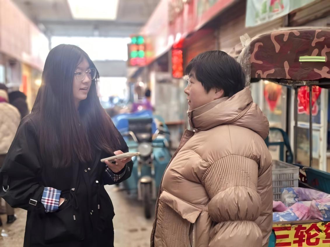 圖為實(shí)踐隊(duì)員訪談消費(fèi)者。 中國青年網(wǎng)通訊員 趙鳳儀 攝
