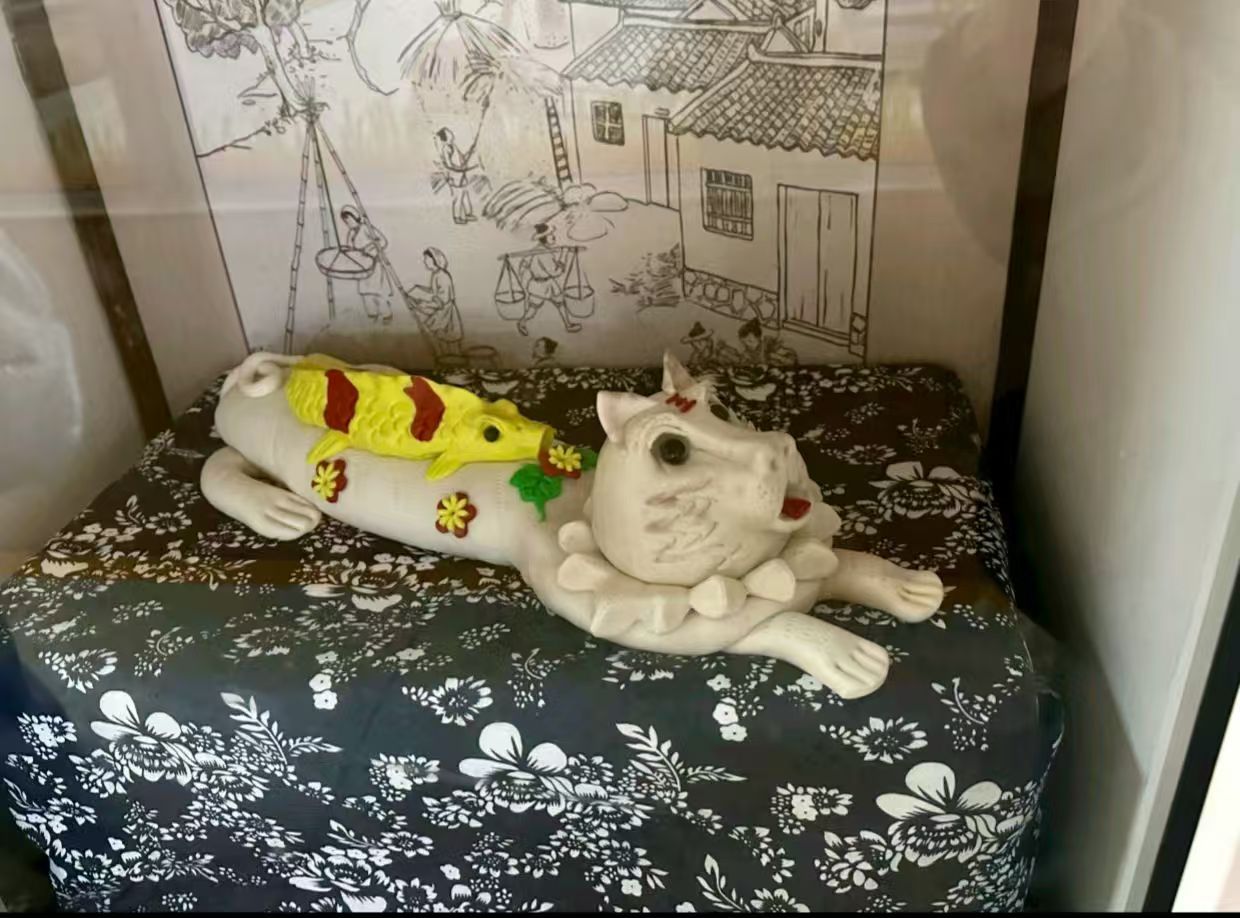 等待蒸饅頭的空暇,老師帶我們參觀了整座廠房。不管是工作間、展覽室還是糧倉,到處都彌漫著一股饅頭溫熱的清香。方形展覽柜中,我們看到五顏六色的龍、蛇、葫蘆、元寶……每一個陳列品都活靈活現,妙趣橫生。小小的發酵面團,經過師傅們親手揉搓、塑形,又通過醒發、鐵鍋蒸制等多道工序才造就出一鍋香噴噴、帶有特色焦黃色“饹馇”的大饅頭,而親手捏制的復雜紋樣更作為展現嫻熟技藝與匠心獨妙的窗口,無時無刻不閃耀出深厚的匠人底蘊,令人品其食味的同時也對其獲得的獨特視覺享受嘆為觀止。