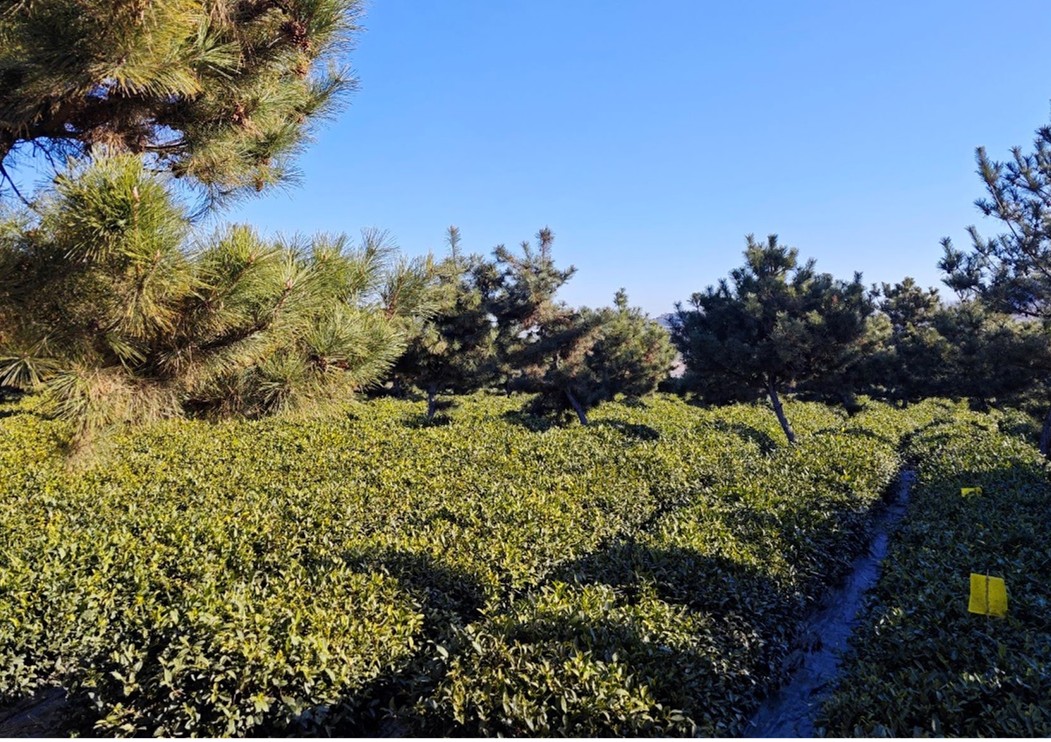 離開大棚區(qū)域,來到露天茶園與大棚內(nèi)的茶樹相比,露天茶樹完全依靠自然環(huán)境生長,雖面臨著低溫、干燥等挑戰(zhàn),但也在長期的適應(yīng)中形成了獨特的抗逆性。