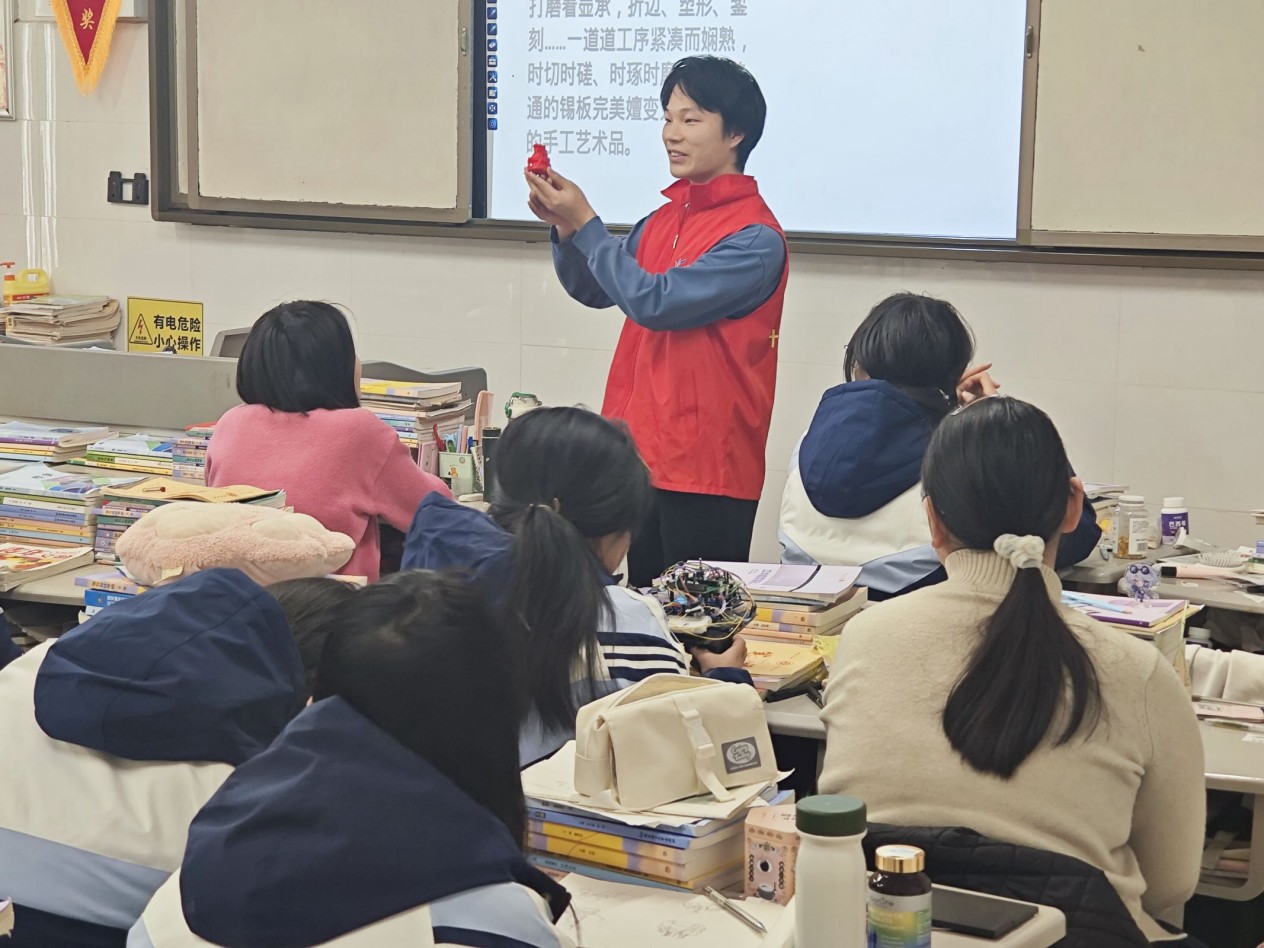 實踐尾聲,隊員們走進莒南縣新城高級中學,開設“鋦瓷里的中國智慧”主題課堂。中學生們在親手拼接瓷片、纏繞鋦釘的過程中,觸摸到“化殘缺為完滿”的東方美學。“每一枚鋦釘都是文明的補丁,我們這代人要做的,就是讓這些補丁變成未來的勛章。”隊長在實踐日記中寫道。寒風凜冽的冬日,年輕學子們用熱忱焐熱了冰冷的瓷土,也讓千年瓷韻在青春血脈中澎湃不息。