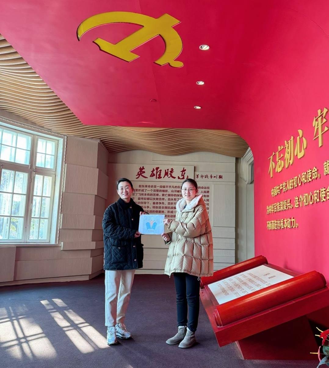實地調研時,我們參觀了煙臺山愛國主義教育基地的展覽與遺跡,觀察基地環境、展陳和游客參觀情況。張楨同學與工作人員交談后了解到,膠東紅色故事與地域文化緊密相連。解放戰爭時期,膠東戰略地位重要,這些膠東紅色故事見證了軍民團結奮斗,承載著堅韌、奉獻等精神,為基地開發提供了深厚底蘊和獨特優勢,例如百姓冒險為部隊送情報的故事就充分體現了這一點。