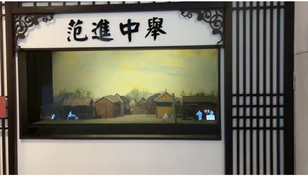 隨后步入展示《范進(jìn)中舉》的區(qū)域,首先闖入視野的,便是那栩栩如生的人物雕塑。范進(jìn)中舉后的癲狂之態(tài)被雕琢得入木三分,只見他披頭散發(fā),衣衫凌亂,臉上洋溢著一種近乎癡傻的狂喜,手中死死地攥著那封改寫他命運(yùn)軌跡的中舉喜報。周圍的人物亦是神態(tài)各異,有滿臉驚訝的鄉(xiāng)鄰,有滿臉諂媚的胡屠戶,他們的每一個表情、每一個動作,都在無聲地訴說著這個故事背后錯綜復(fù)雜的社會關(guān)系。