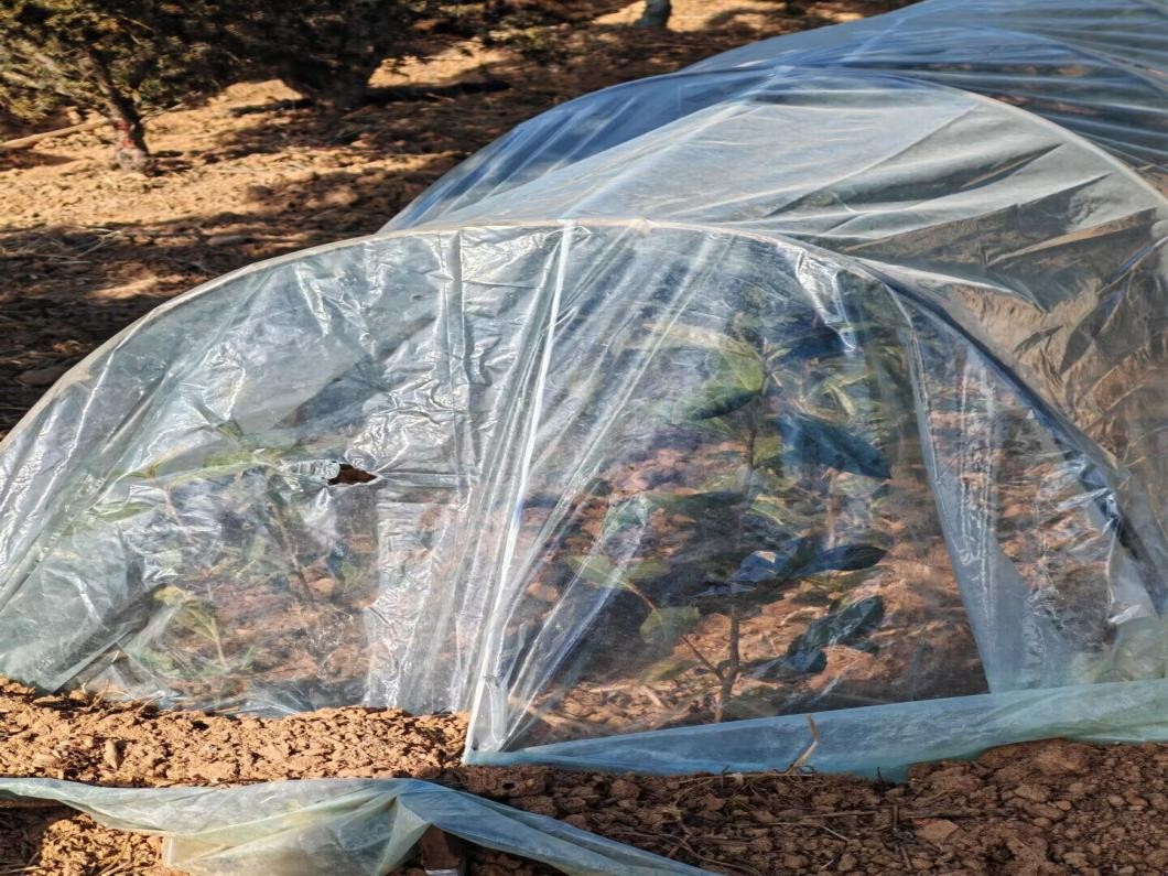 圖為茶葉生長中覆膜這一防凍害措施的展示。郭宇婷 供圖